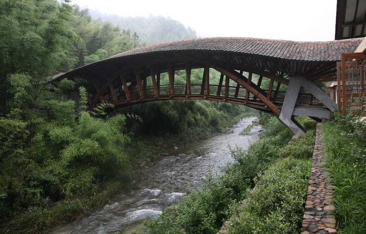 ?。?)妥善處理社會和文化問題,在旅游規(guī)劃設(shè)計中結(jié)合中國環(huán)境造園原理和風(fēng)水堪輿理論,汲取客家地區(qū)傳統(tǒng)建筑元素,如夯土墻、瓦屋頂、竹子使用。將西方度假理念與中國建筑,當(dāng)?shù)厝宋挠袡C結(jié)合起來。
