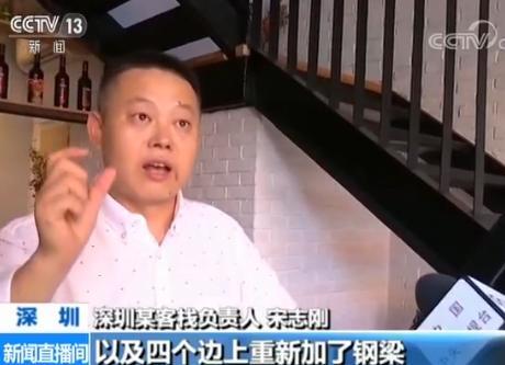 深圳某客棧負(fù)責(zé)人 宋志剛:我的預(yù)算多了20多萬,整體樓梯全部采用鋼結(jié)構(gòu)。第二我們在樓梯的四個角以及四個邊上重新加了鋼梁,做一個整體的加固。