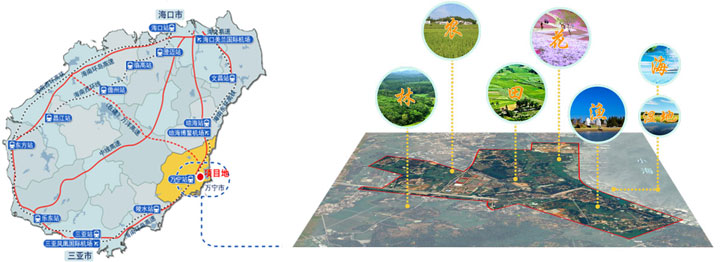項目位于海南省萬寧市東部沿海,東臨小海,南依東山嶺風(fēng)景區(qū),西靠萬寧城區(qū),北接生態(tài)農(nóng)業(yè)園,規(guī)劃面積約5000多畝,其中建設(shè)用地面積約2000畝,可建設(shè)建筑占地面積約800畝。