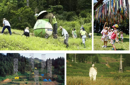 越后妻有日文意為“被白雪覆蓋著的村落”。2000年,北川富朗先生聯(lián)合了一批來自世界各地的藝術(shù)家發(fā)起了以“人類屬于大自然”為主題的藝術(shù)節(jié),通過鼓勵藝術(shù)家進入社區(qū),融合當(dāng)?shù)丨h(huán)境,與農(nóng)村里的老人家以及來自世界各地的年輕義工共同改造,以760平方公里的山村和森林為舞臺,重新探討現(xiàn)代和傳統(tǒng)、城市和鄉(xiāng)村的關(guān)系,創(chuàng)造出數(shù)百件與大自然及社區(qū)共生的藝術(shù)作品。藝術(shù)節(jié)創(chuàng)辦至今已有七屆,每屆藝術(shù)節(jié)都會留下一些優(yōu)秀且易于保存的作品,成為當(dāng)?shù)丨h(huán)境的一個組成部分。在越后妻有,曾經(jīng)人煙稀少的村落以最有魅力的藝術(shù)形式吸引世界各地的城市人來到這里感受鄉(xiāng)間的魅力。
